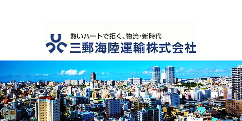 | 事業所 | ■三郵海陸運輸株式会社 沖縄支店 〒901-2123 沖縄県浦添市西洲2丁目11-4 098-871-2385 ■三郵海陸運輸株式会社 うるま配送センター 〒904-2203 沖縄県うるま市字川崎495番地2 098-988-7127 |